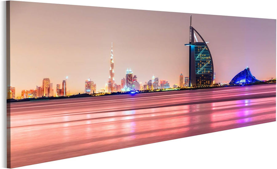 Bild auf Leinwand Burj Al Arab Dubai Hotel Pink Sky und Meer Wandbild Poster Kunstdruck Bilder Forma