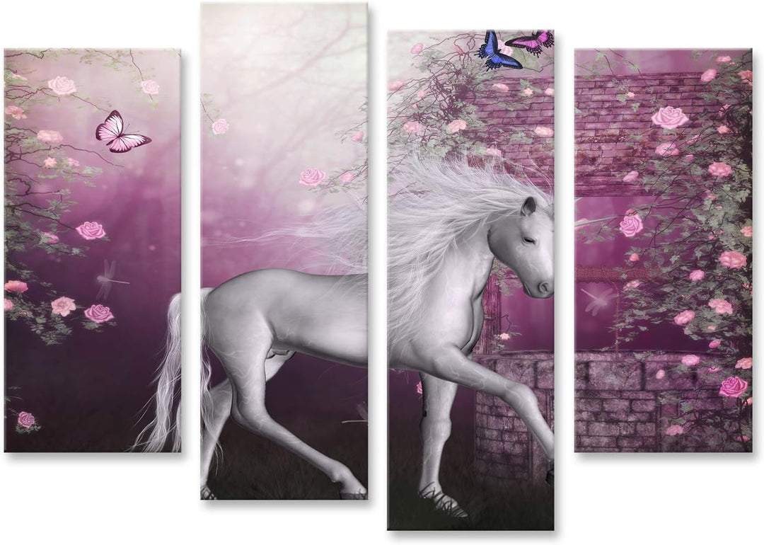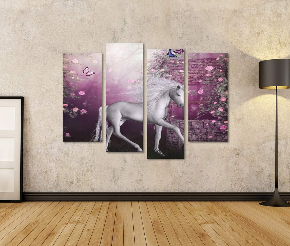 Bild auf Leinwand D Render of EIN Einhorn Wandbild Poster Kunstdruck Bilder Format: 130x80cm - 4 Tei