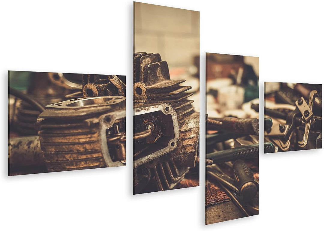 Bild auf Leinwand EIN Teil Der Motorrad Motor Auf Einem Tisch In Der Werkstatt Wandbild Poster Kunst