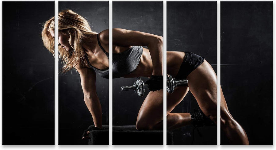 Bild auf Leinwand Fitness Hanteln Brutal Athletische Frau Aufpumpen Muskeln Wandbild Poster Kunstdru
