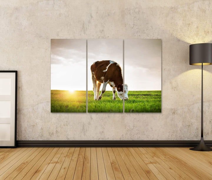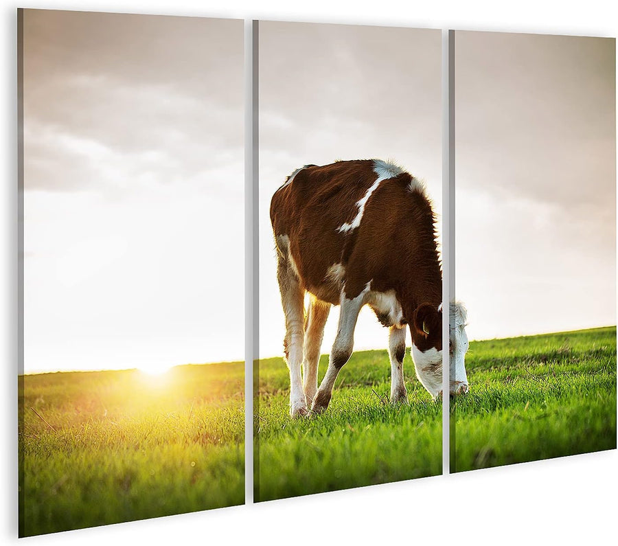 Bild auf Leinwand Kuh grasend Frische Weiden Sonnenuntergang Wandbild Poster Kunstdruck Bilder Forma