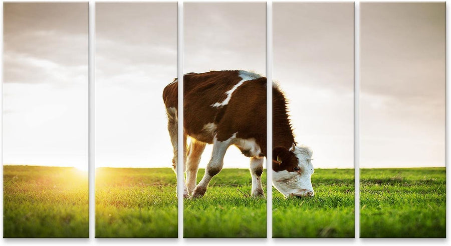 Bild auf Leinwand Kuh grasend Frische Weiden Sonnenuntergang Wandbild Poster Kunstdruck Bilder, Lein