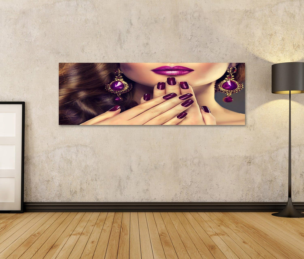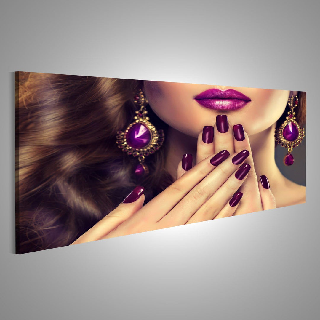 Bild auf Leinwand Luxus Mode Stil Nägel Maniküre Kosmetik Make Up Und Lockiges Haar Wandbild Poster