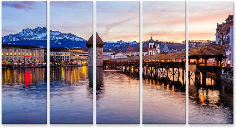 Bild auf Leinwand Luzern Schweiz Die Hölzerne Kapellbrücke In Der Historischen Altstadt Und Der Pila