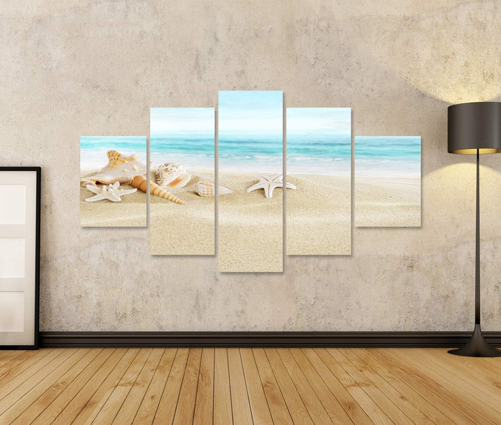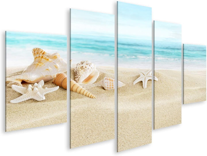 Bild auf Leinwand Muscheln Am Sandstrand Wandbild Poster Kunstdruck Bilder Format: 170x80cm - 5 Teil