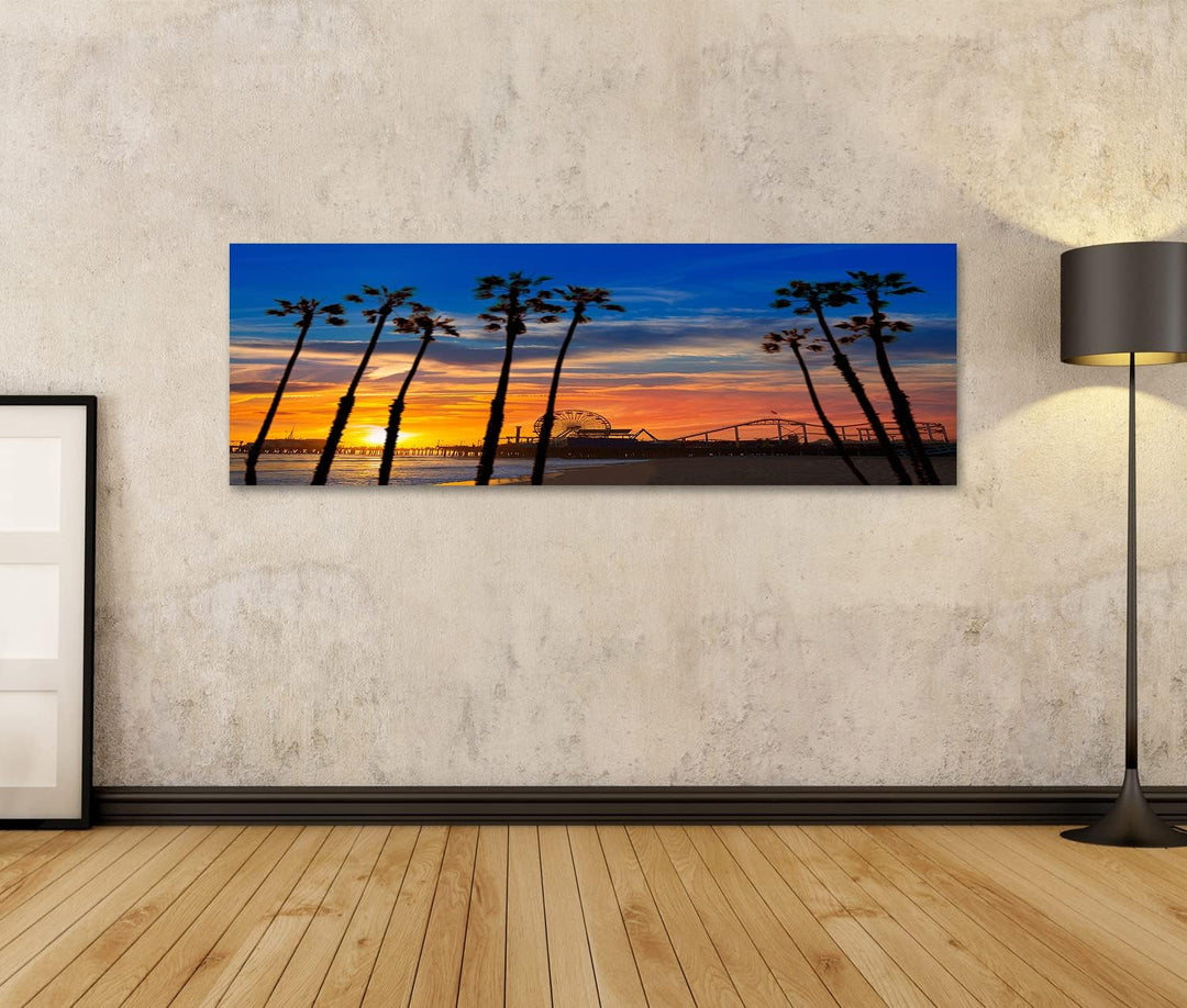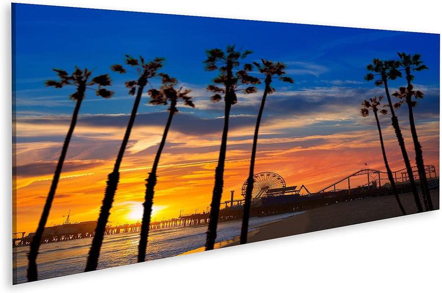 Bild auf Leinwand Santa Monica Kalifornien Sonnenuntergang Am Pier Fähren Rad Und Reflexion Auf Nass