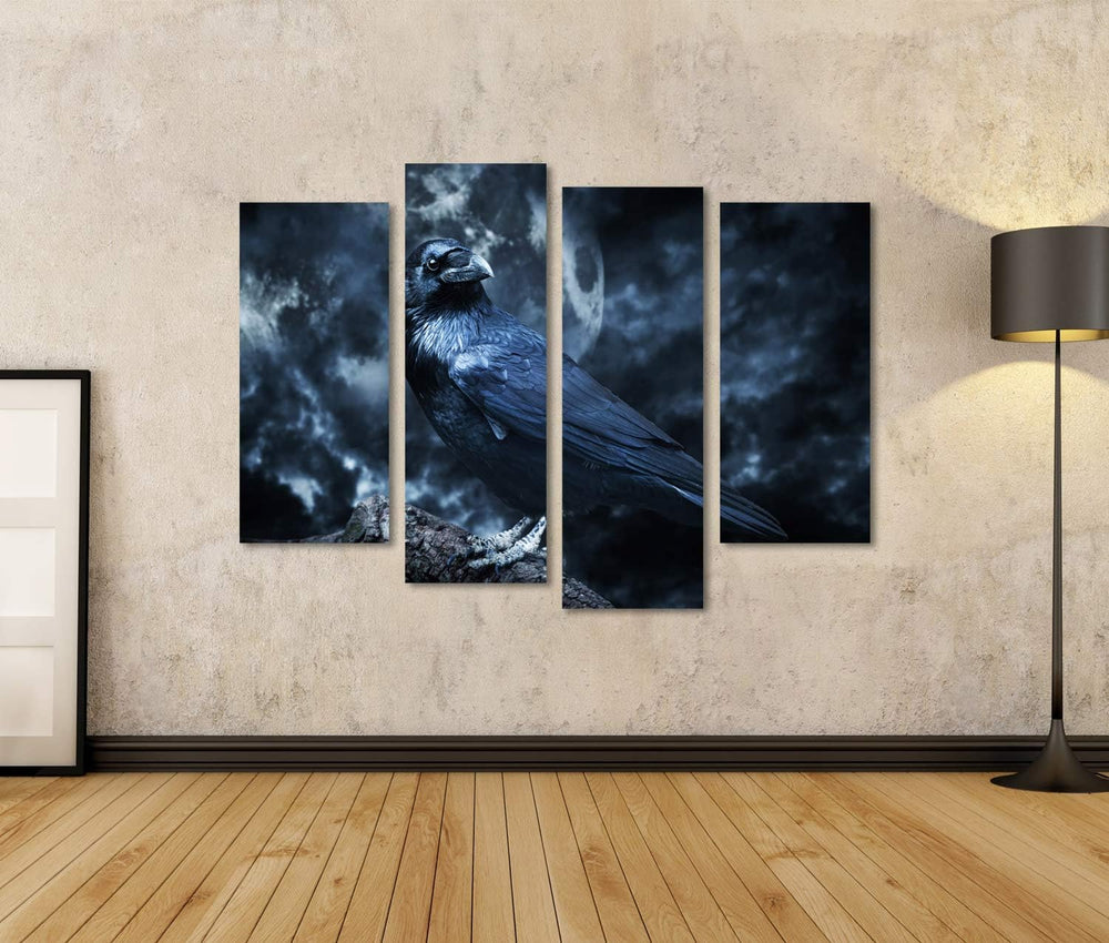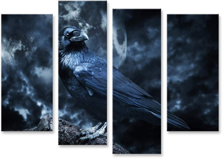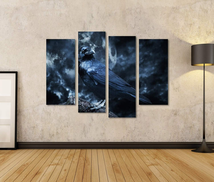 Bild auf Leinwand Schwarzer Rabe Mondlicht Baum Gruselig Gruselig Gothic Setting Bewölkt Nacht Vollm