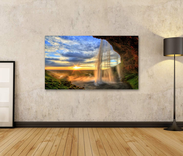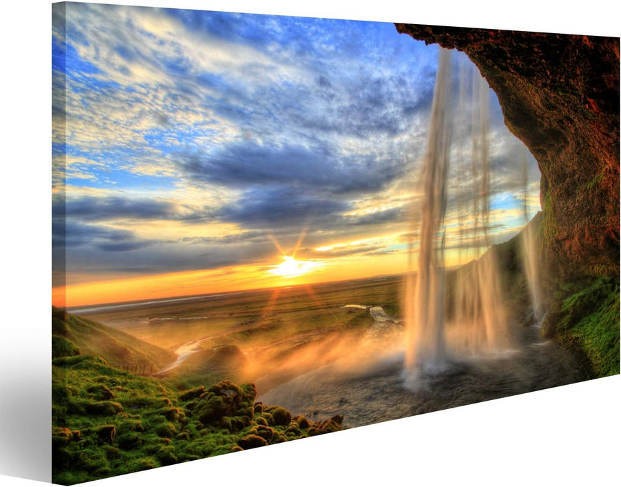 Bild auf Leinwand Seljalandfoss Wasserfall Bei Sonnenuntergang In HDR Island Wandbild Poster Kunstdr