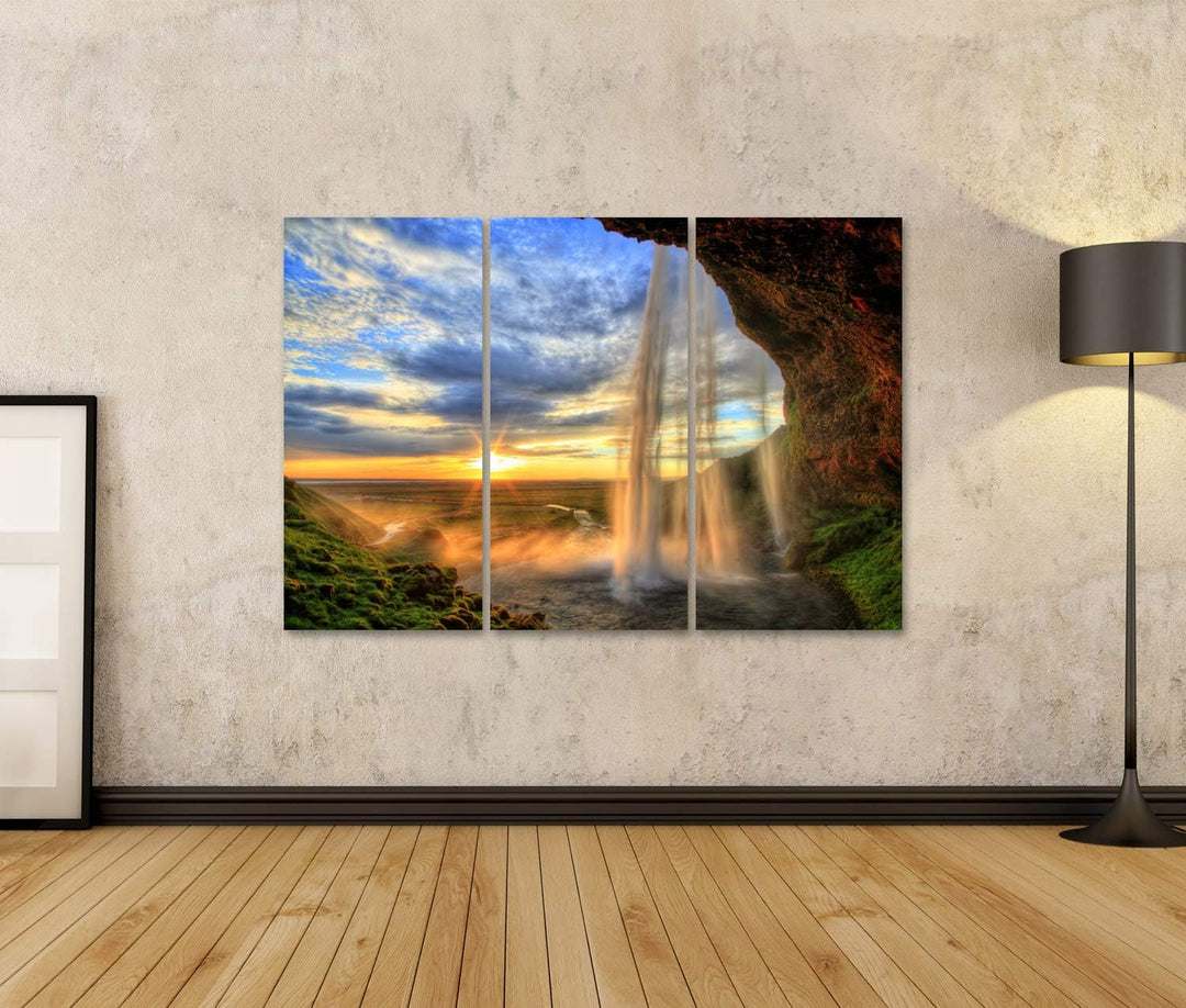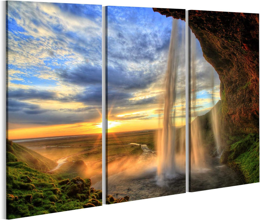 Bild auf Leinwand Seljalandfoss Wasserfall Bei Sonnenuntergang In HDR Island Wandbild Poster Kunstdr