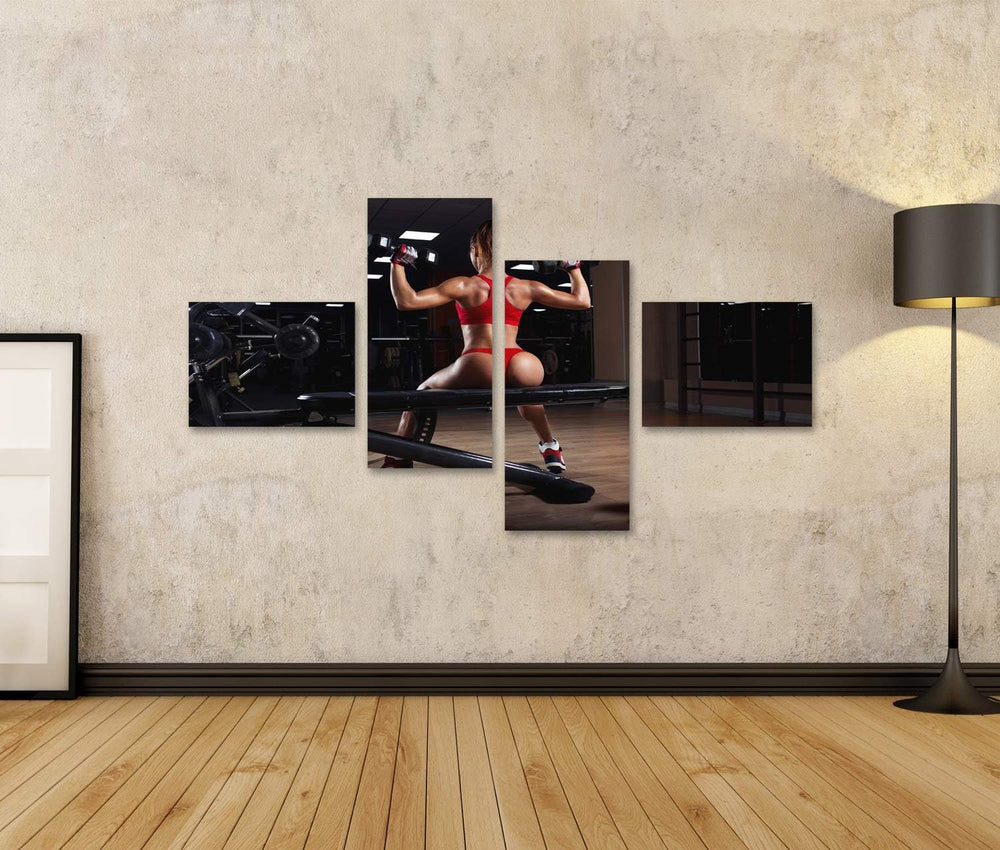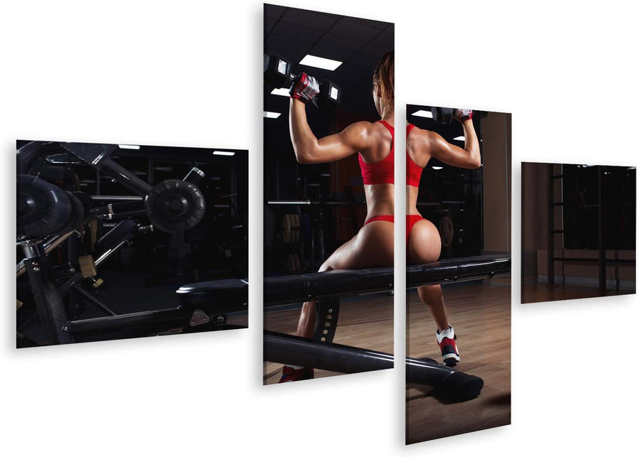 Bild auf Leinwand sexy junges Mädchen, das sich nach den Kurzhantel-Übungen ausruht. Fitness-Frau au