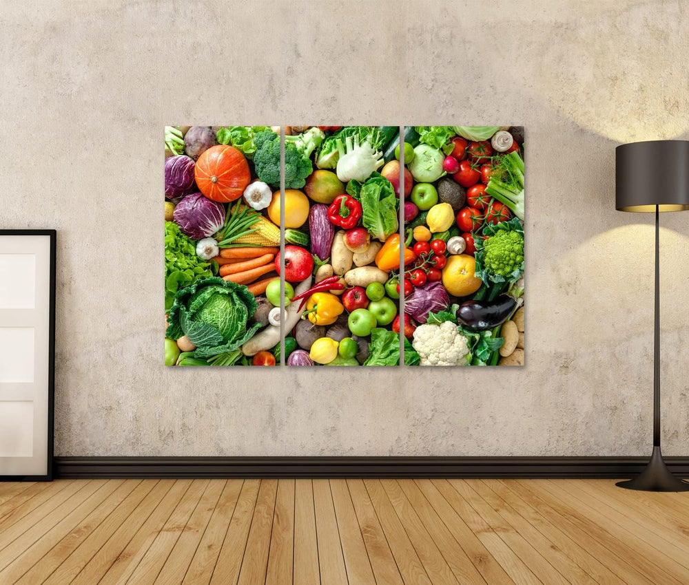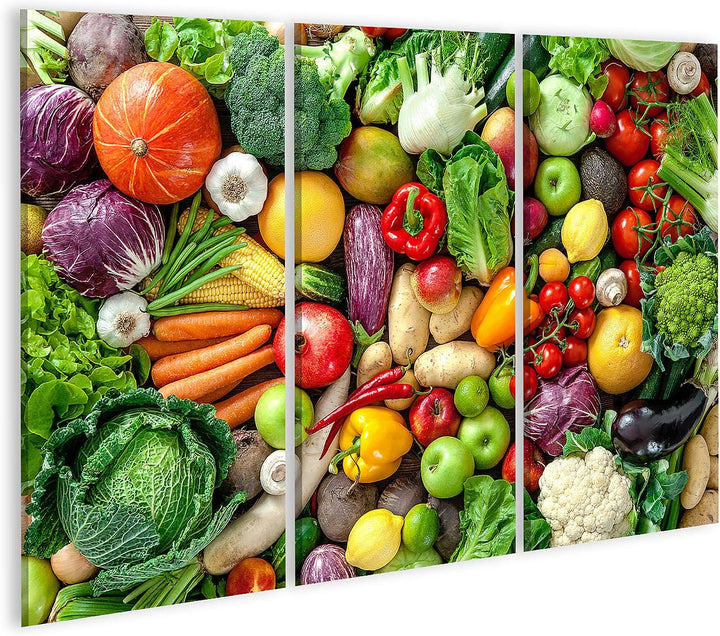 Bild auf Leinwand Sortiment Von Frischem Obst Und Gemüse Wandbild Poster Kunstdruck Bilder Format: 1