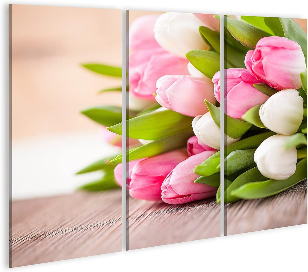 Bild auf Leinwand Strauss Tulpen Vor Frühlingsszene Wandbild Poster Kunstdruck Bilder Format: 130x80