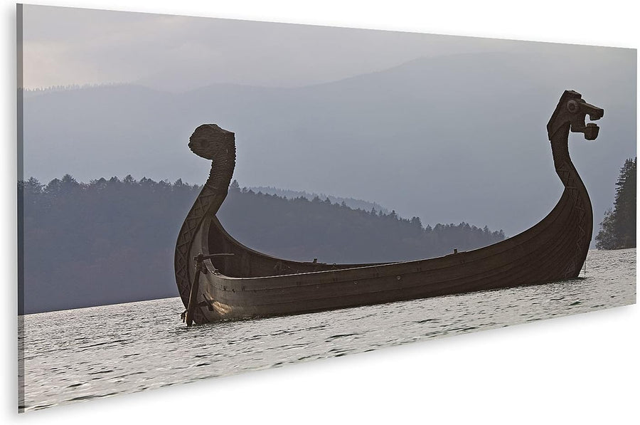 Bild auf Leinwand Wikinger Schiff In Walchensee Gegen Das Licht Wandbild Poster Kunstdruck Bilder Fo