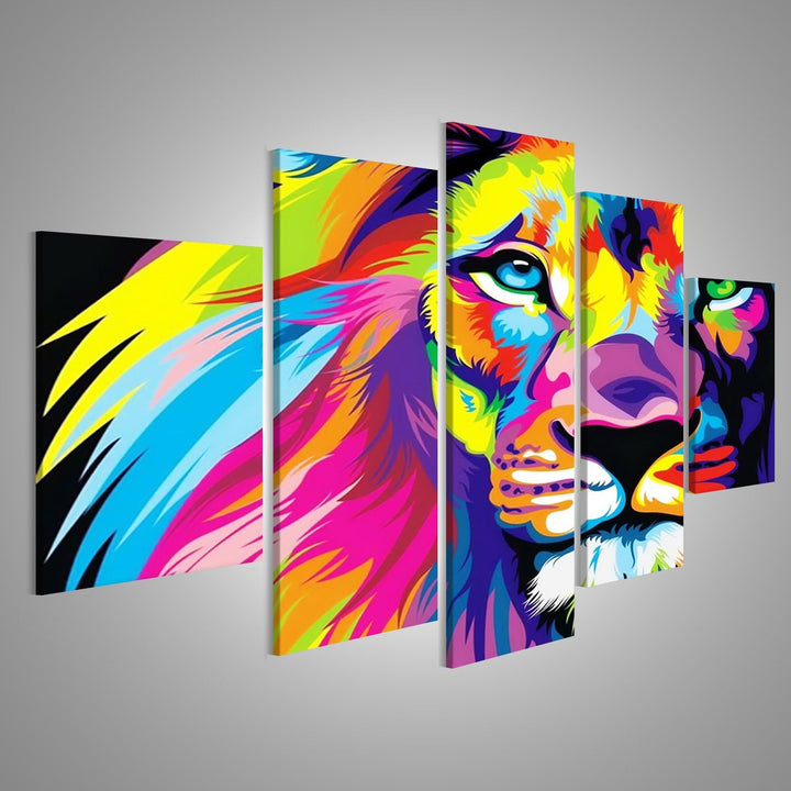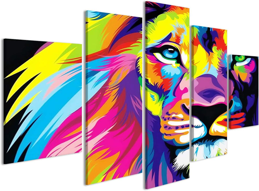 Bild Bilder auf Leinwand Bunter Löwe Banksy Street Art Abstrakte Kunst Wandbild, Poster, Leinwandbil
