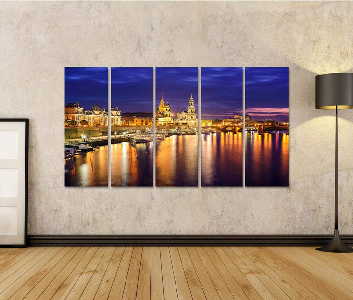 Bild Bilder auf Leinwand Dresden Deutschland innerstädtische Skyline an der Elbe Wandbild Poster Lei