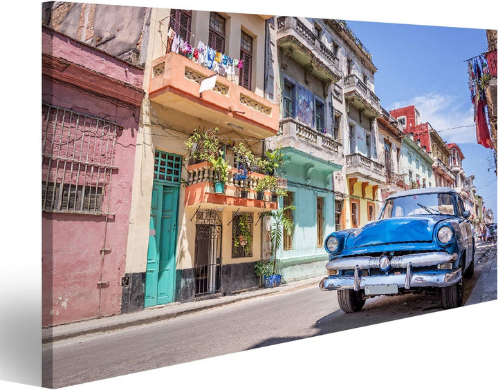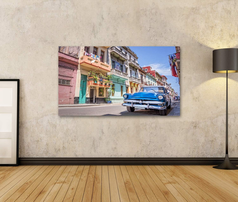 Bild Bilder auf Leinwand Klassisches amerikanisches Oldtimer-Auto in Havanna, Kuba. Wandbild, Poster