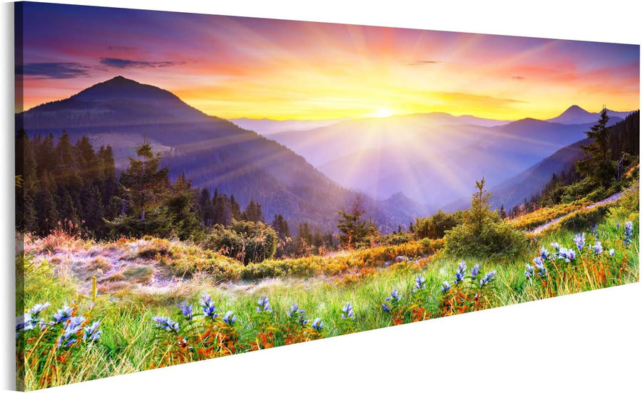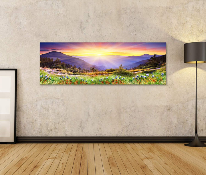 Bild Bilder auf Leinwand majestätischer Sonnenuntergang im Gebirgslandschaft HDR Bild Wandbild, Post