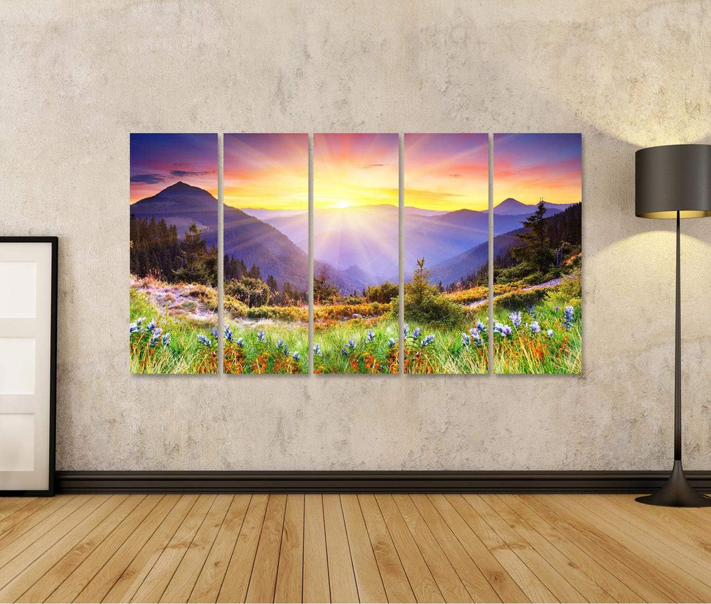 Bild Bilder auf Leinwand majestätischer Sonnenuntergang im Gebirgslandschaft hdr Bild Wandbild, Post