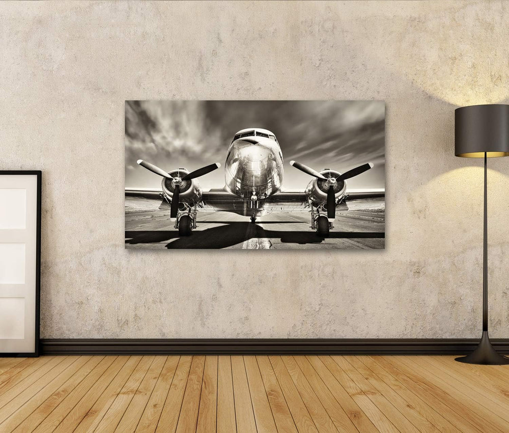 Bild Bilder auf Leinwand Retro-Flugzeug Wandbild Poster Leinwandbild TIO 100x57cm, 100x57cm