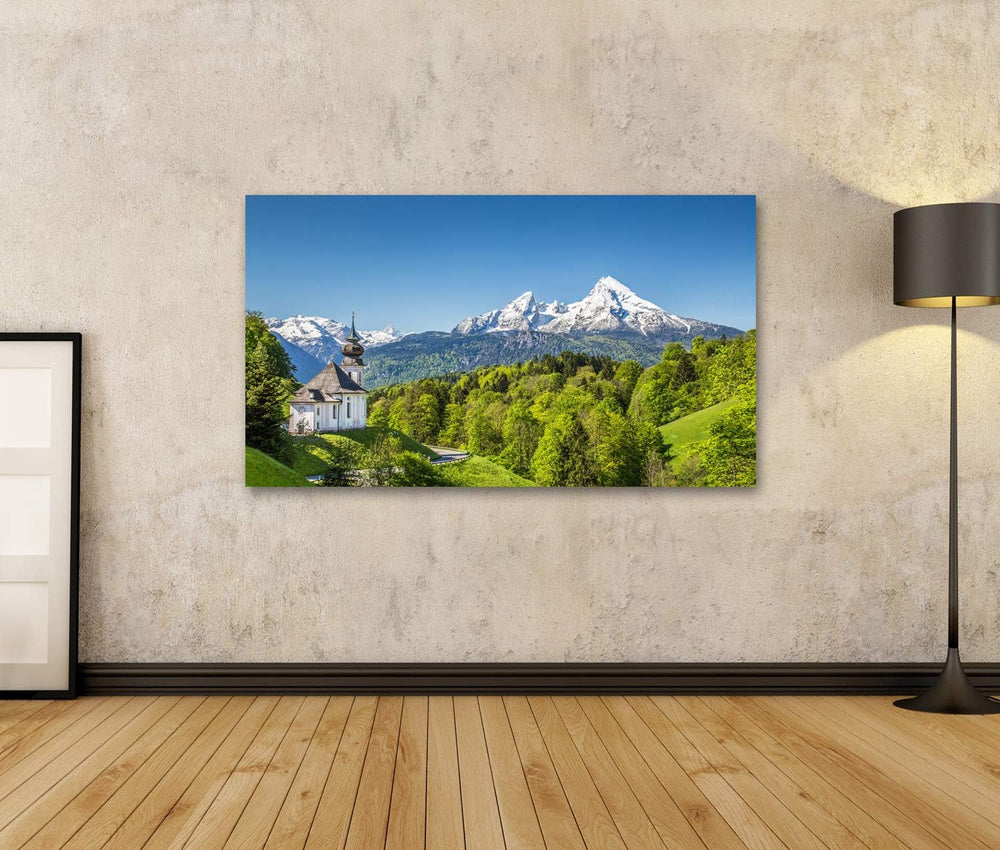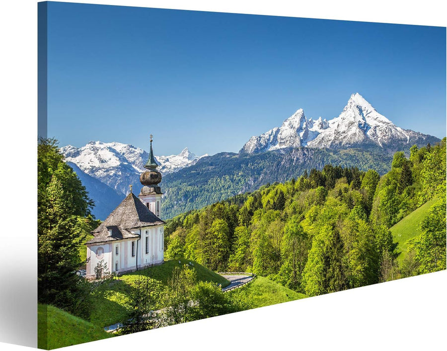 Bild Bilder auf Leinwand Schöne Berglandschaft in den bayerischen Alpen mit Wallfahrtskirche Maria G