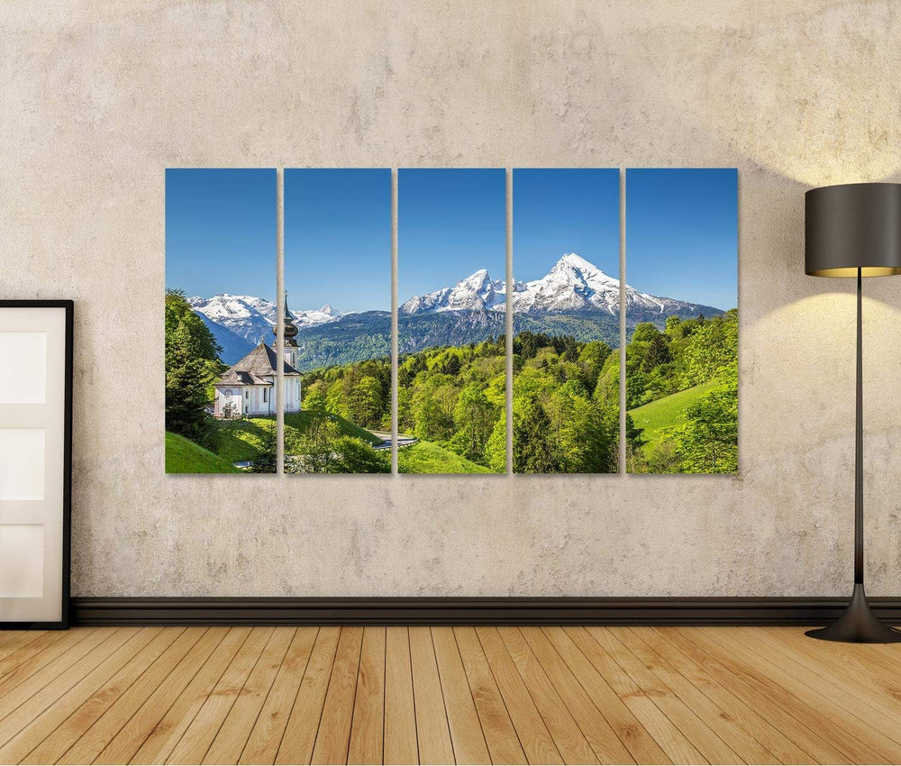 Bild Bilder auf Leinwand Schöne Berglandschaft in den bayerischen Alpen mit Wallfahrtskirche Maria G