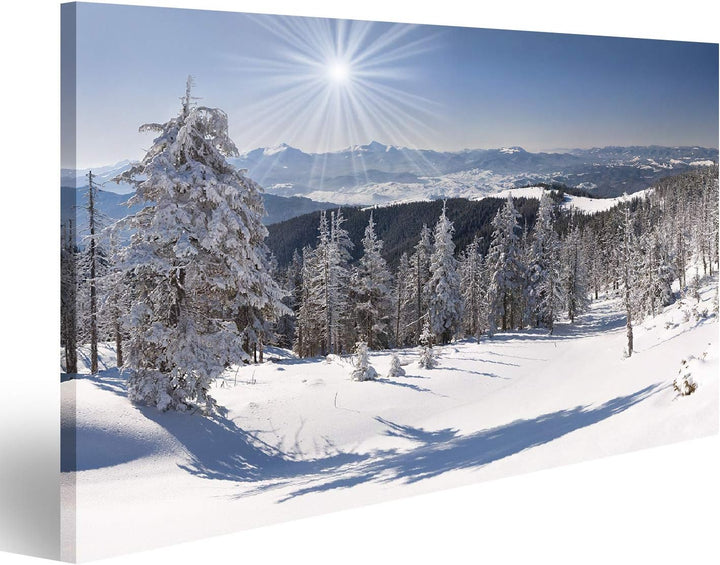 Bild Bilder auf Leinwand Schöne Winterlandschaft in den Bergen Wandbild Poster Leinwandbild VAZ 130x