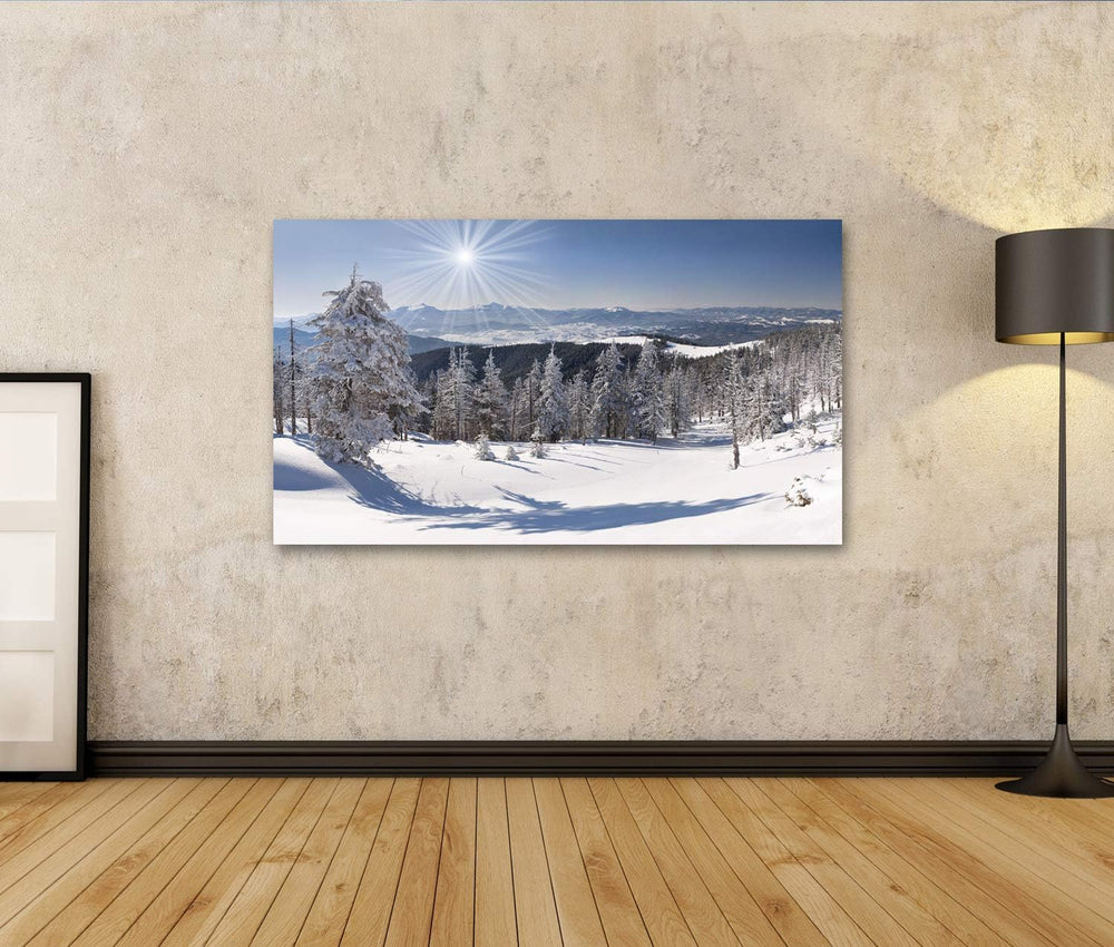 Bild Bilder auf Leinwand Schöne Winterlandschaft in den Bergen Wandbild Poster Leinwandbild VAZ, Lei