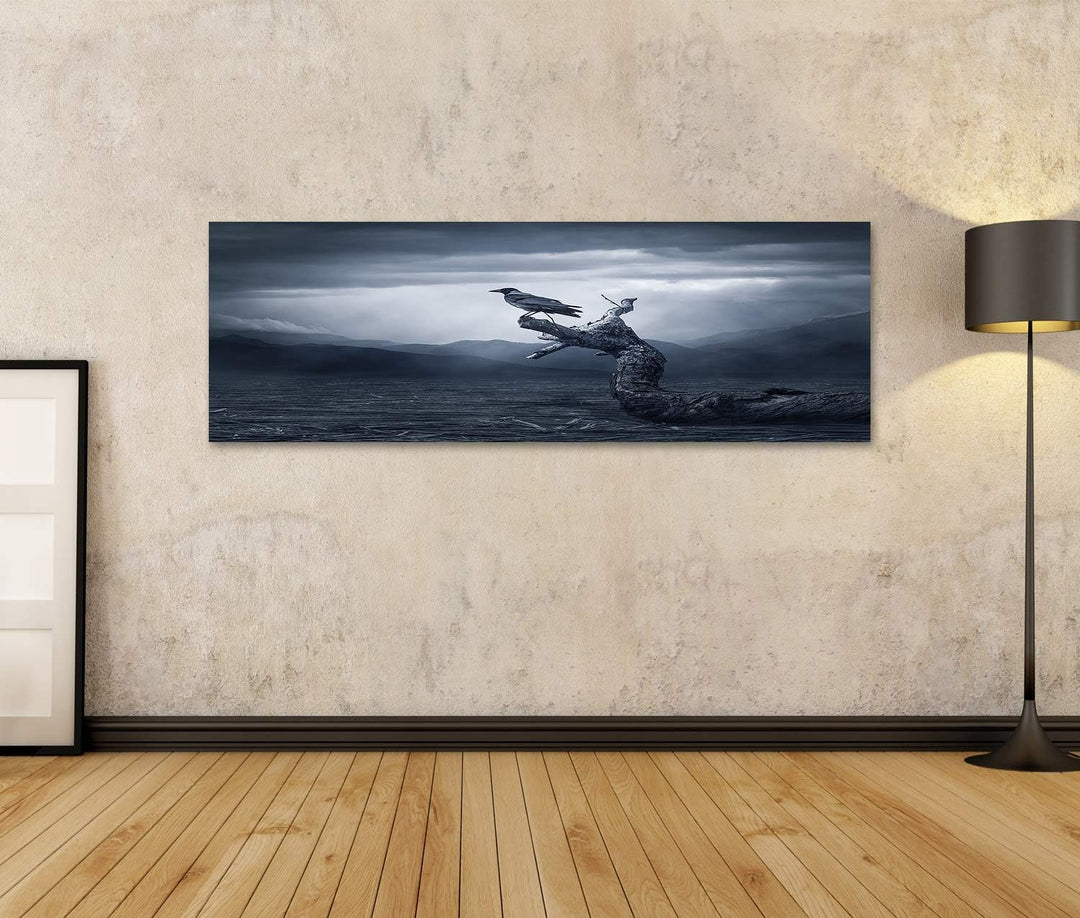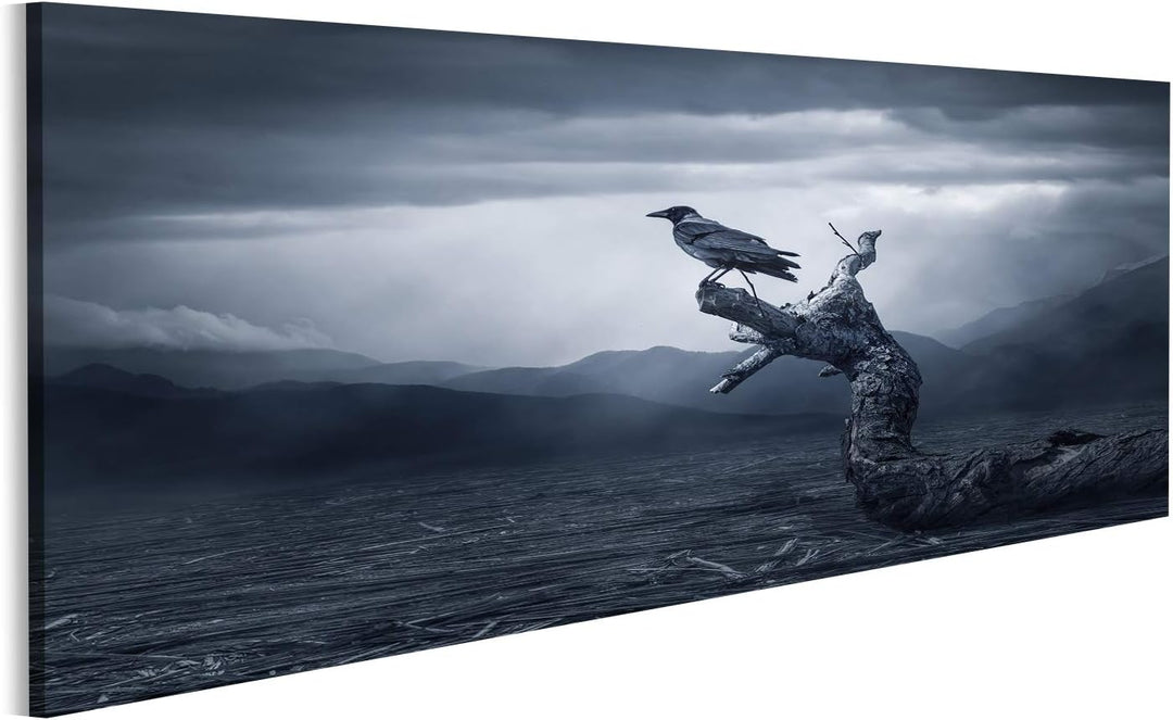 Bild Bilder auf Leinwand Schwarzer Rabe im Mondschein hockte auf Baum. Gruselig, gruselig, gotische