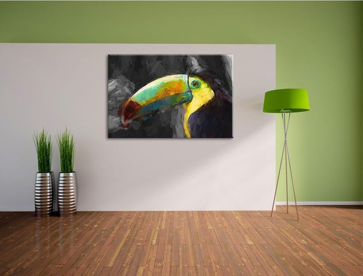 bildschöner gemalter Tukan Format: 120x80 auf Leinwand, XXL riesige Bilder fertig gerahmt mit Keilra