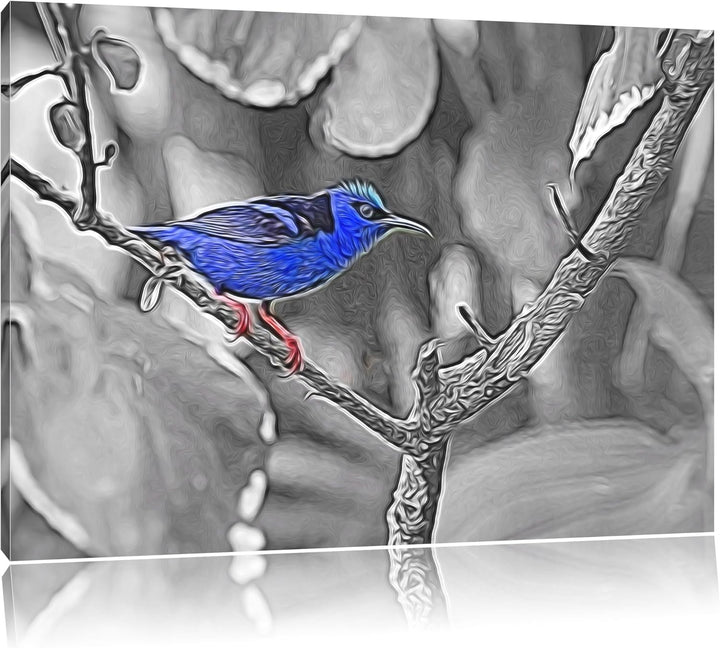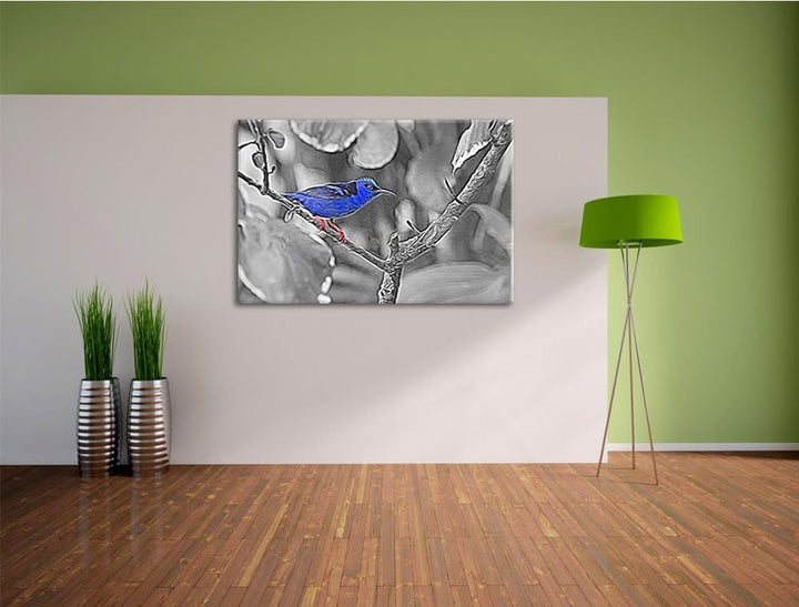 bildschöner Türkisnaschvogel auf Zweig schwarz/weiss Deluxe Format: 100x70 cm auf Leinwand, XXL ries