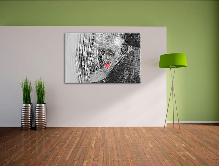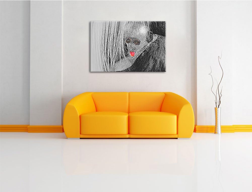 bildschönes Colobus-Äffchen schwarz/weiss Deluxe Format: 100x70 cm auf Leinwand, XXL riesige Bilder