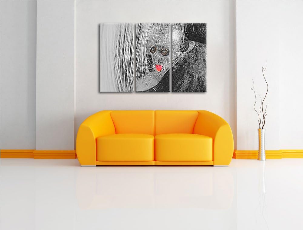 bildschönes Colobus-Äffchen schwarz/weiss Deluxe 3-Teiler Leinwandbild 120x80 Bild auf Leinwand, XXL