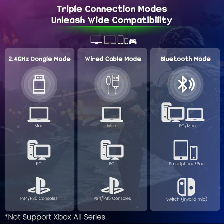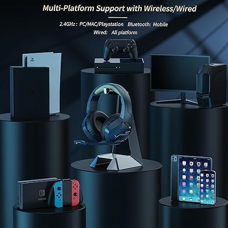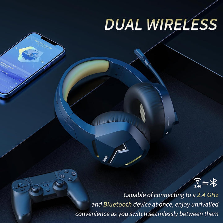 - 【2,4G Wireless und Bluetooth 5.3】BINNUNE Headset Kabellos kombiniert fortschrittliche, verlustfreie 2,4G Wireless für professionellen Gaming-Sound auf PC und PS4, PS5 mit dem Komfort der Bluetooth-Konnektivität Ihrer mobilen Bluetooth-Geräte. Sie