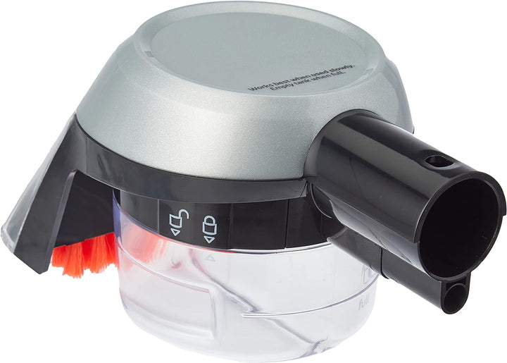 - Schmutzpartikel werden aufgenommen und in einen separaten, abnehmbaren Behälter befördert, der leicht abgeschraubt und geleert werden kann