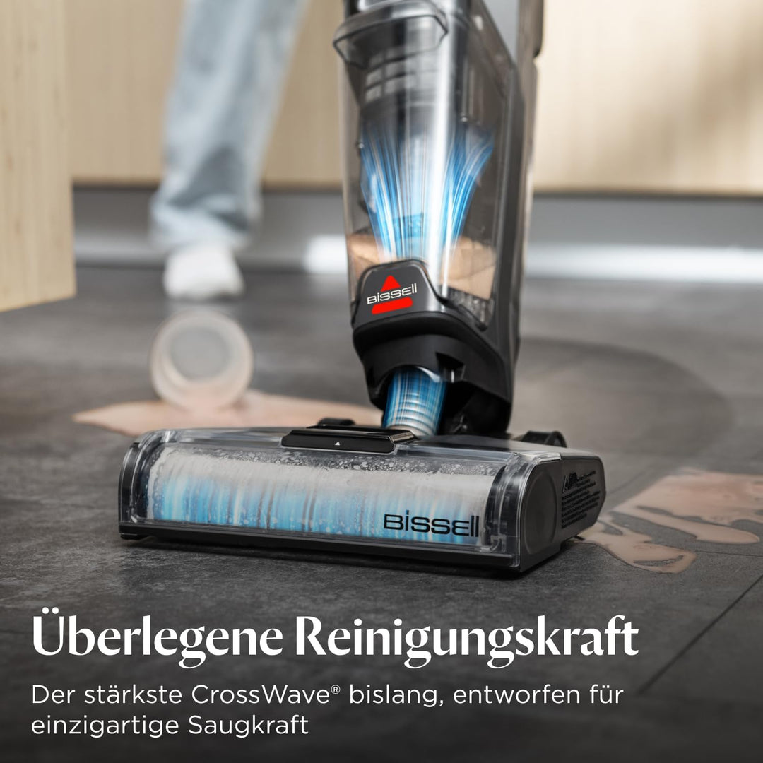 - Power Mop Mode: Entfernt hartnäckige, nasse Flecken, wie Spaghetti oder Farbe, undVerschmutzungen nahtlos, mit 75 % mehr Saugkraft* (im Vergleich zum BISSELL CrossWave X7 Plus Cordless Pet)