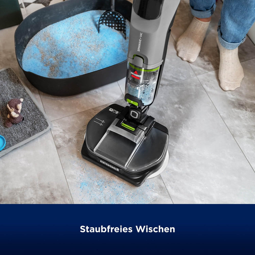 - STAUBFREIES WISCHEN: Der SpinWave + Vac saugt trockenen Schmutz auf, während Sie wischen. Der Zyklonsauger zieht Tierhaare, Krümel und Schmutz mühelos in den Trockentank