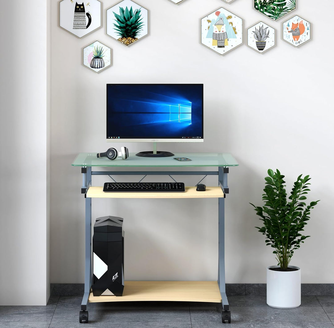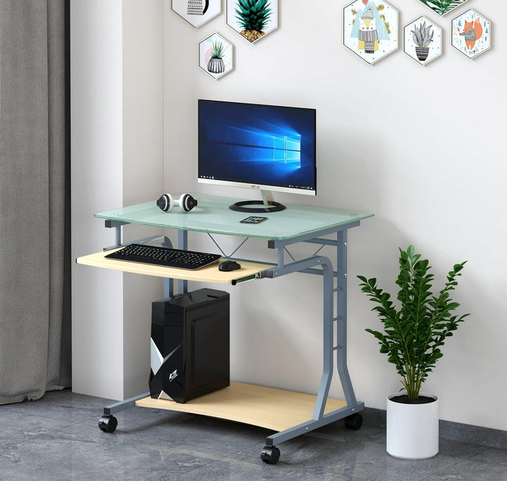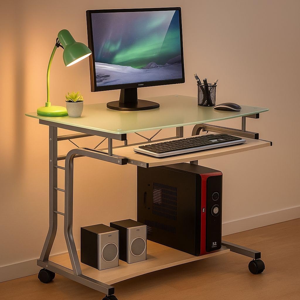 - Biurko Techly ze szklanym blatem i póÅ‚kÄ… na klawiaturÄ