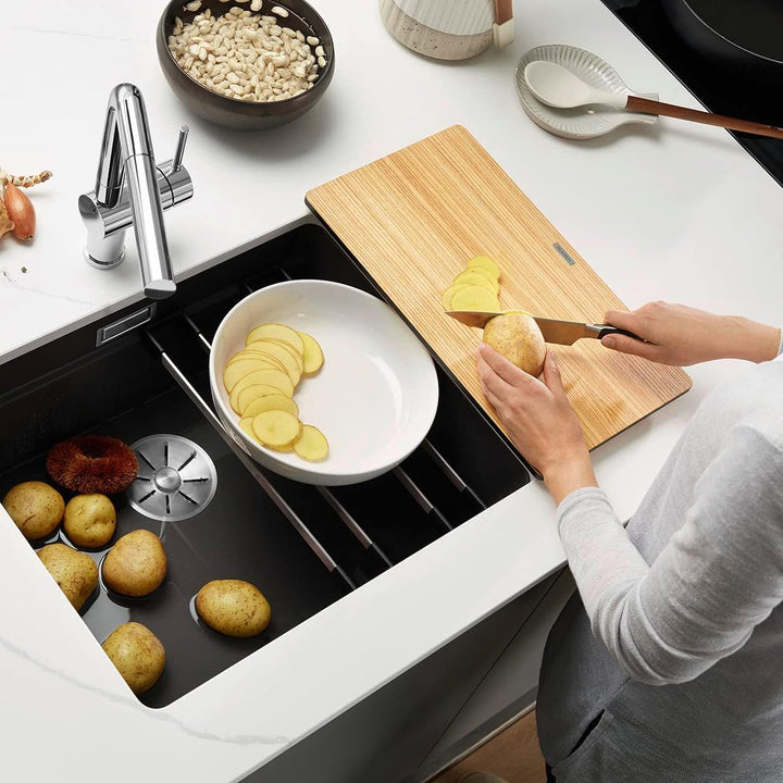 • Zum Einsatz an Becken für Unterbau und IF-Einbau, Im Arbeitsplattenausschnitt bzw. an der Innenwand von Becken geführte Schneidbretter erhöhen die Funktionalität, Geeignet für Beckenbreiten von 400 mm oder 396 mm