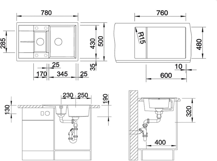 - Funktionalität und optimale Raumnutzung: Das tiefe Becken erleichtert das Spülen sperrigen Geschirrs, während mit der verkürzten Abtropffläche Arbeitsfläche gespart wird