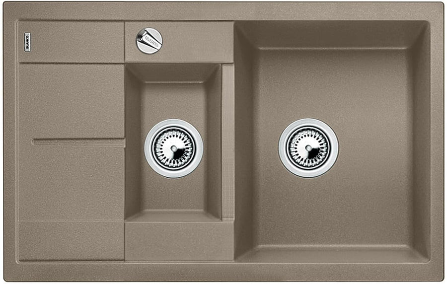 - Einbauspüle in Tartufo: Mit verkürzter Abtropffläche für 60 cm breite Unterschränke – in weiteren SILGRANIT-Farben erhältlich und farblich auf die passenden BLANCO Armaturen abstimmbar