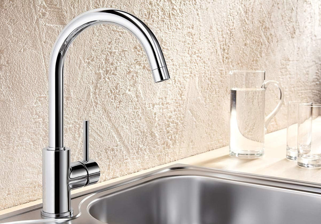- Harmonisches Design: Die schlanke Form der Chromarmatur passt zu vielen Kücheneinrichtungen und setzt durch den runden, hohen Auslauf einen dezenten Akzent