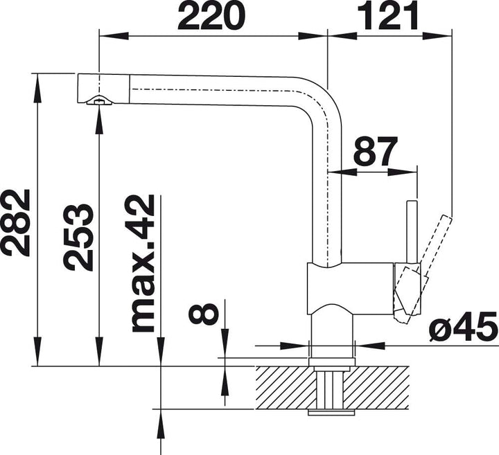 • Einfache Montage: Flexible Anschlussschläuche mit 450 mm Länge und 3/8“ Mutter – Hahnlochbohrung mit 35 mm Durchmesser benötigt – fester Stand in Edelstahl-Spülen durch Stabilisierungsplatte