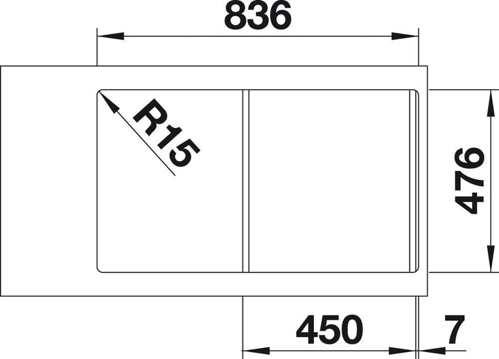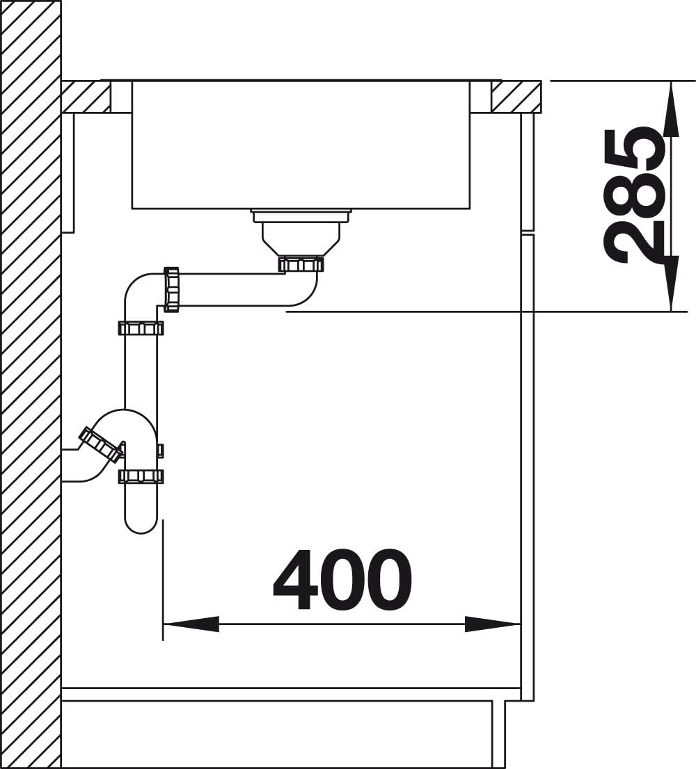 - Geradlinige Einbauspüle: Für 45 cm breite Unterschränke mit integrierter Abtropffläche – in elegantem Edelstahl-Bürstfinish