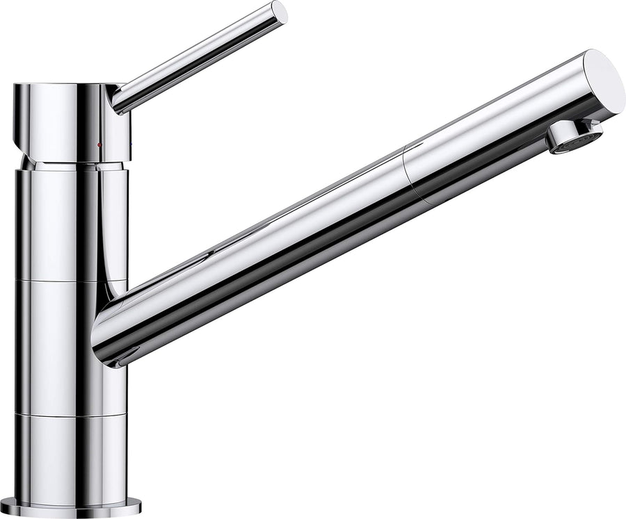 - Der modern gestaltete Einhandmischer in Chrom fügt sich harmonisch in verschiedene Einrichtungsstile ein – dank der niedrigen, schlanken Form besonders für kleine Spülen geeignet