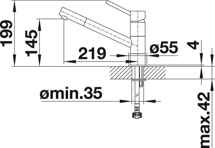 - Einfache Montage: Flexible Anschlussschläuche mit 350 mm Länge und 3/8“ Mutter – Hahnlochbohrung mit 35 mm Durchmesser benötigt – fester Stand in Edelstahl-Spülen durch Stabilisierungsplatte