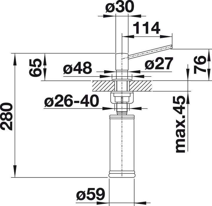 - Hahnlochbohrung von 35 mm Durchmesser erforderlich