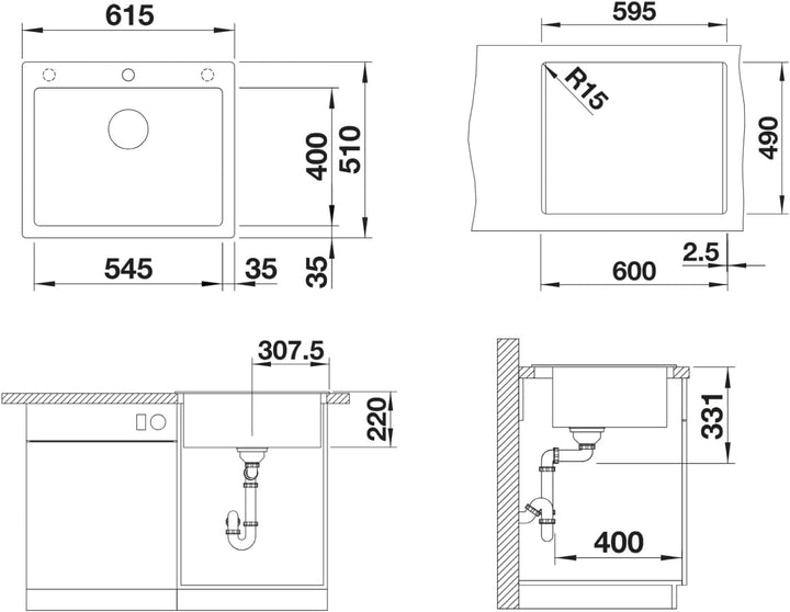 - Reinigungsfreundlicher fliessender Übergang vom Spülenrand zur Batteriebank