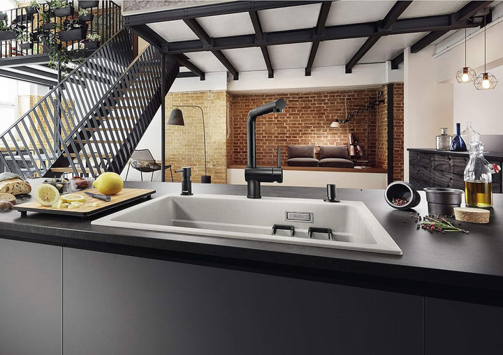 - Grosszügiger Aktionsradius auch ausserhalb der Spüle: Ausziehbarer Auslauf für vereinfachtes Befüllen schwerer Töpfe und leichtes Reinigen grosser Spülen