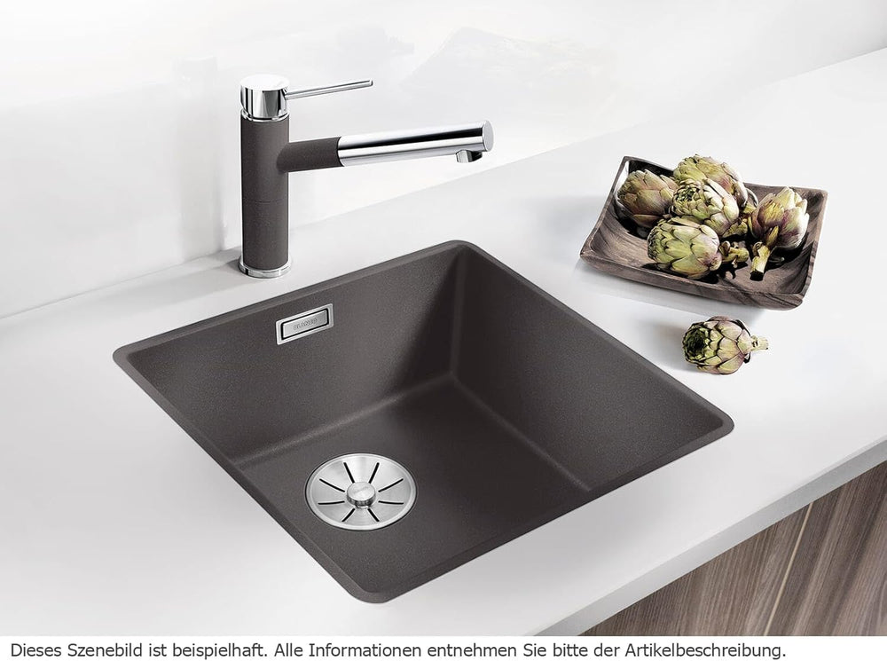 - Stufenlose Übergänge: Die flächenbündige Küchenspüle in Schwarz für 50 cm breite Unterschränke schliesst stufenlos mit der Arbeitsplatte ab – Ideal für modern-minimalistische Küchen