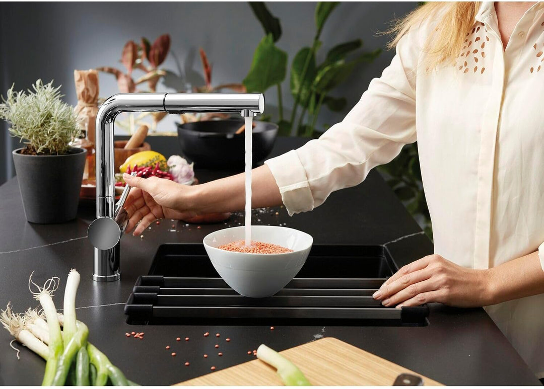 - Das ganze Potenzial der Küchenspüle nutzen: Mit dem passenden Zubehör wie den TOP-Schienen können viele Arbeitsschritte an der Spüle vereint werden – von der Lebensmittelvorbereitung bis hin zum Abwasch